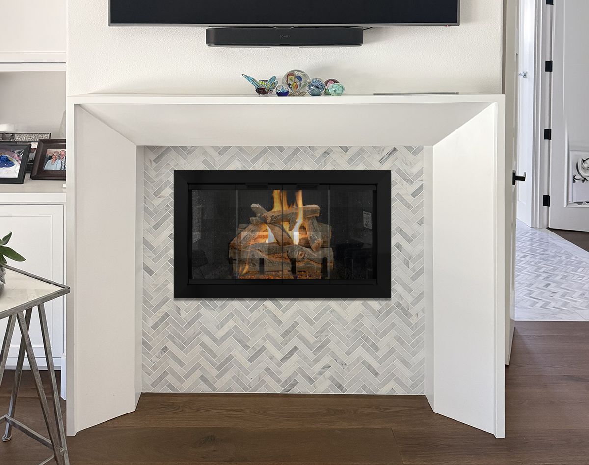 Photo #1: With your camera sideways, take a picture directly in front of the fireplace from far enough away to see the entire fireplace floor to ceiling like this.