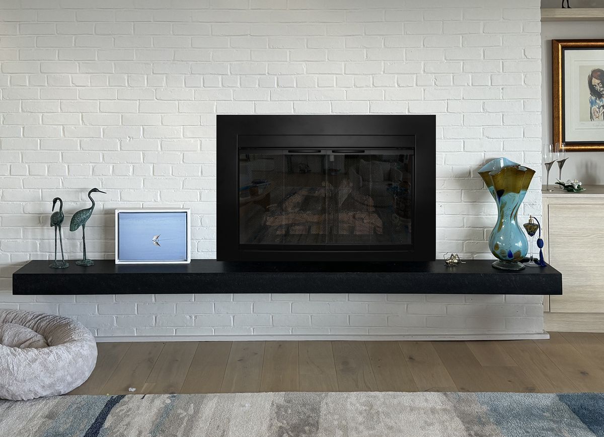 The Fremont is a formed steel door that comes in standard sizes that fit most masonry fireplaces. standard as a cabinet door with clear glass. The frame is 3 1/2" wide (sides) x 5 1/4" H (top) x 1" D. The sub-frame recesses 3/8" into the opening without mesh and 1 3/16" with mesh. Available in the finishes shown below.