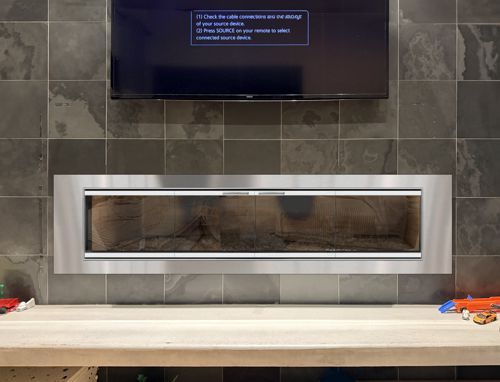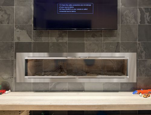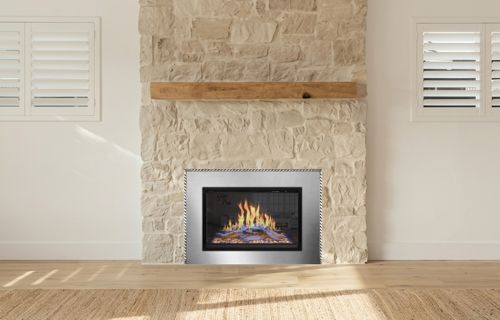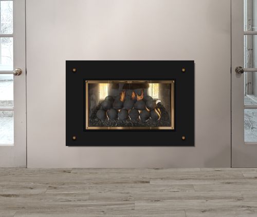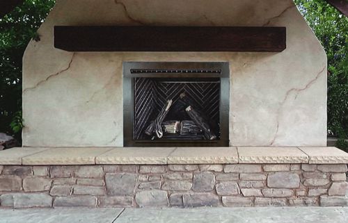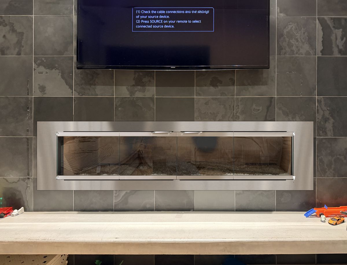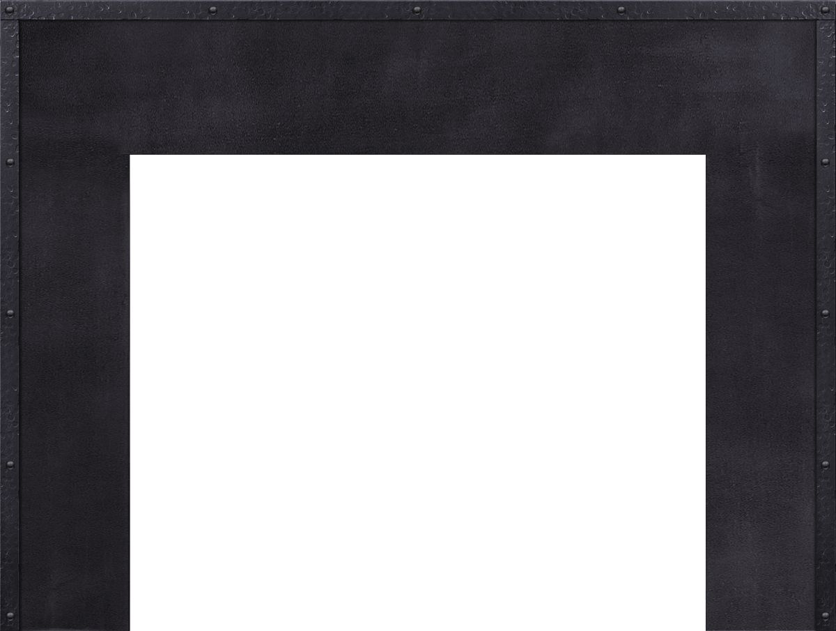 Hearth Creations surround trims are laser cut from 11 gauge (~1/8" thick) steel and can be made in a variety of finishes. Inner and outer returns can be made as needed and they can be attached with magnets, pressure screws or masonry anchors.