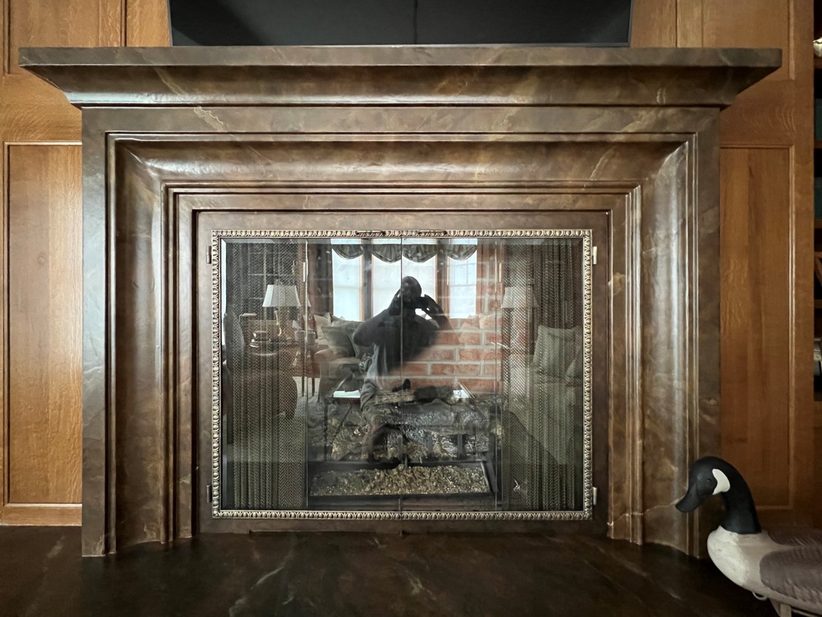 Choosing the Finish: Your magnificent Chandelier is the most predominant fixture in the room that the fireplace door needs to compliment. The weathered brass finish is a great choice if you wish to use the chandelier as the influence. Aged brass or Bronze Patina are also excellent choices that will blend well with the chandelier yet add a little variation in tone to compliment the mantel. It is not possible for us to create mockups in finishes like these, so we used Weathered Brass to create the mockups. Please refer to the finish pallet below to select your finish.