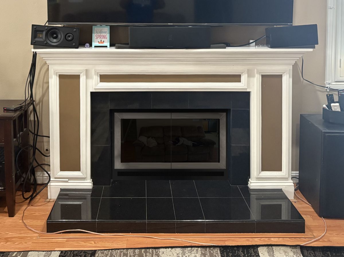 Option #2: Hearth Creations Retrim-5 Zero Clearance Modern Cabinet Fireplace Door in Black with Antique Gray Doors, Gray Glass (No Mesh).