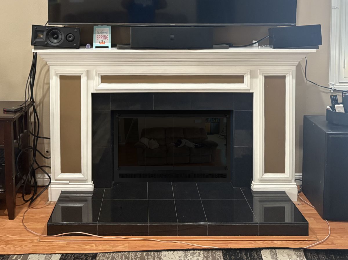 Our Comments: The way the marble has been applied to cover portions of metal fireplace creates a limitation with the types of doors that can be installed. The doors cannot block Airflow to the open space at the top and the louver at the bottom. For this reason, I am presenting just two options.