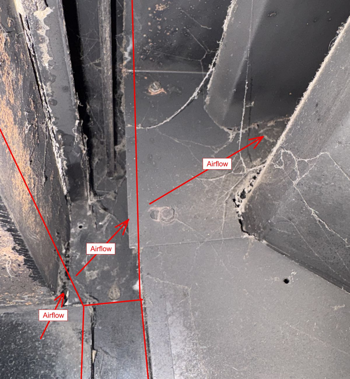 Fig #2 - Top Left: The red line is the frame. There will be a gap at the top to allow space for Airflow.