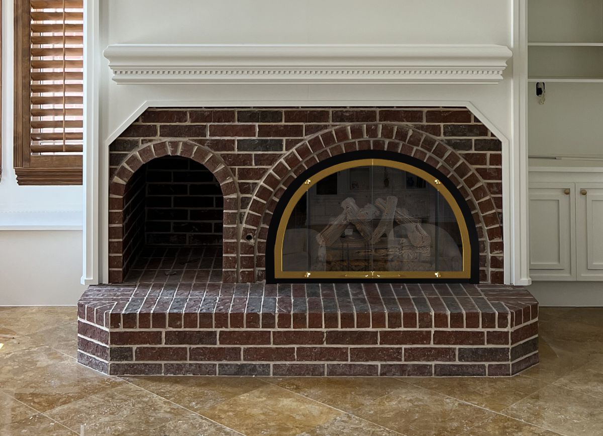 If you are planning on burning anything in your fireplace, you need to have mesh behind the glass so you can burn a fire with the doors open. You can chooe between gate mesh backup doors and sliding mesh curtains. Functionally, gate mesh performs the best as the wire has smaller holes that sparks cannot get through. Aesthetically, mesh curtains may be preferred because they do not have a vertical center frame that obstructs the view of the fire. When you are not using the fire or you want a complete unobstructed view, they do not stick out like gate mesh doors when they are opened.