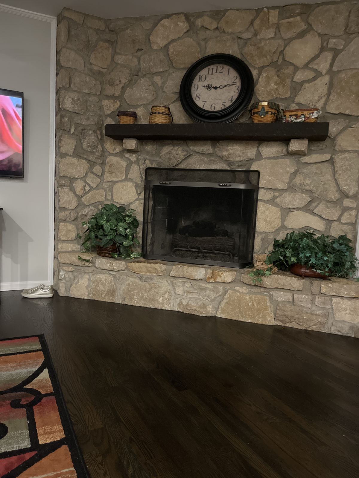 Photo #2: With your back to the fireplace, take a picture looking straight out into the room so we can see the decor directly in front of the fireplace.