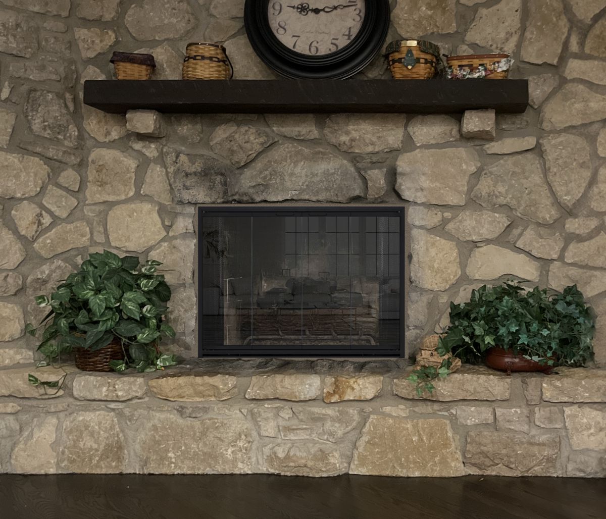 If you are planning on burning anything in your fireplace, you need to have mesh behind the glass so you can burn a fire with the doors open. You can chooe between gate mesh backup doors and sliding mesh curtains. Functionally, gate mesh performs the best as the wire has smaller holes that sparks cannot get through. Aesthetically, mesh curtains may be preferred because they do not have a vertical center frame that obstructs the view of the fire. When you are not using the fire or you want a complete unobstructed view, they do not stick out like gate mesh doors when they are opened.