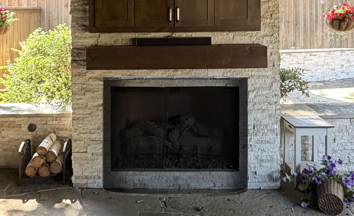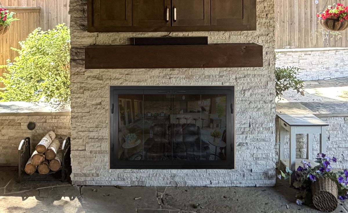 If you are planning on burning anything in your fireplace, you need to have mesh behind the glass so you can burn a fire with the doors open. You can chooe between gate mesh backup doors and sliding mesh curtains. Functionally, gate mesh performs the best as the wire has smaller holes that sparks cannot get through. Aesthetically, mesh curtains may be preferred because they do not have a vertical center frame that obstructs the view of the fire. When you are not using the fire or you want a complete unobstructed view, they do not stick out like gate mesh doors when they are opened.
