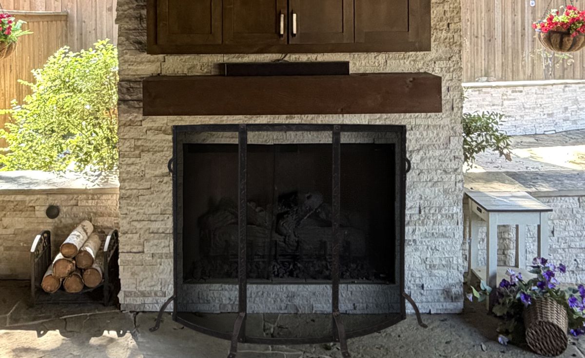 Option #2: Hand Crafted Zinc Coated Lone Star Wrought Iron Cabinet Outdoor Fireplace Mesh Door in Burnished Black.