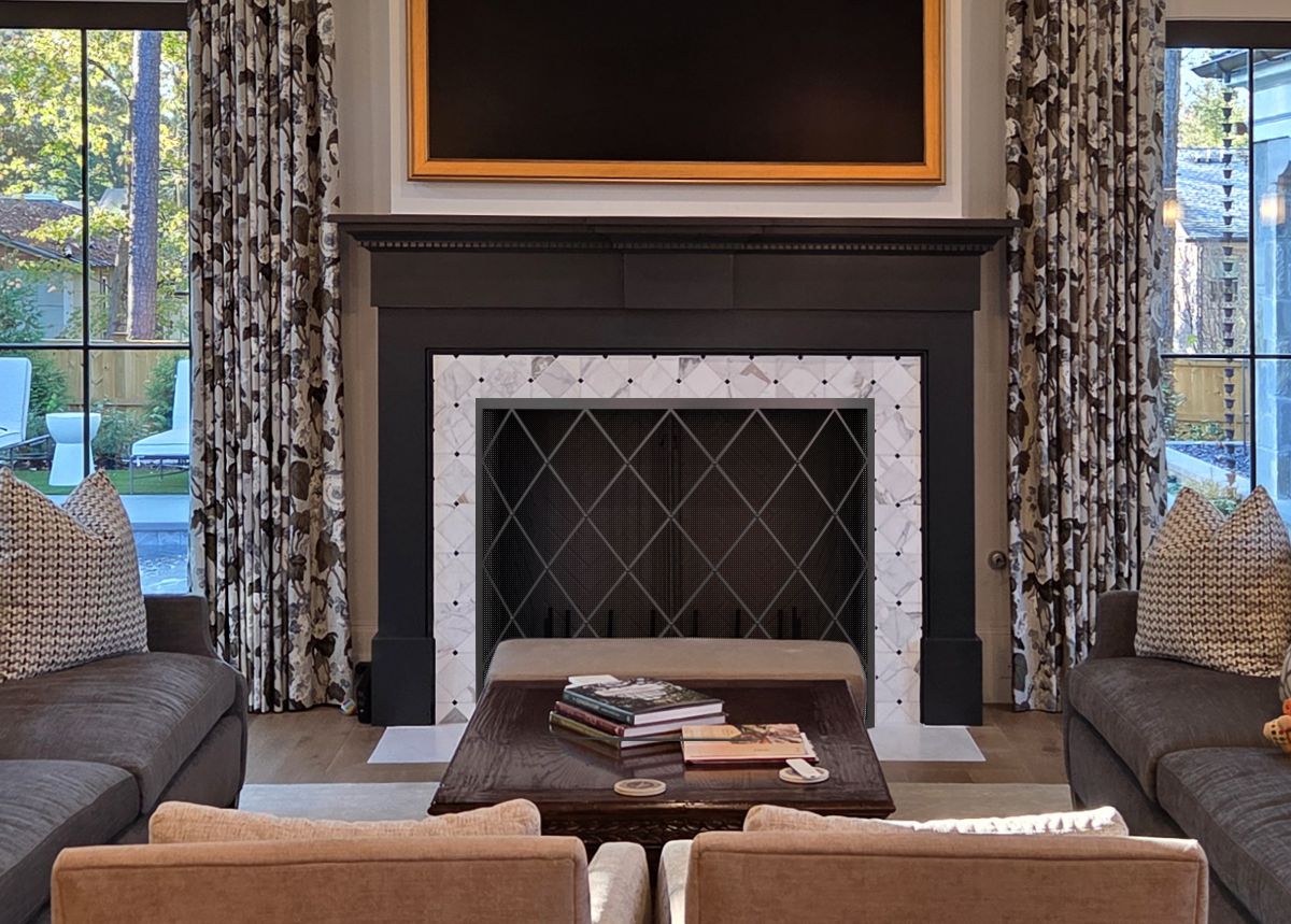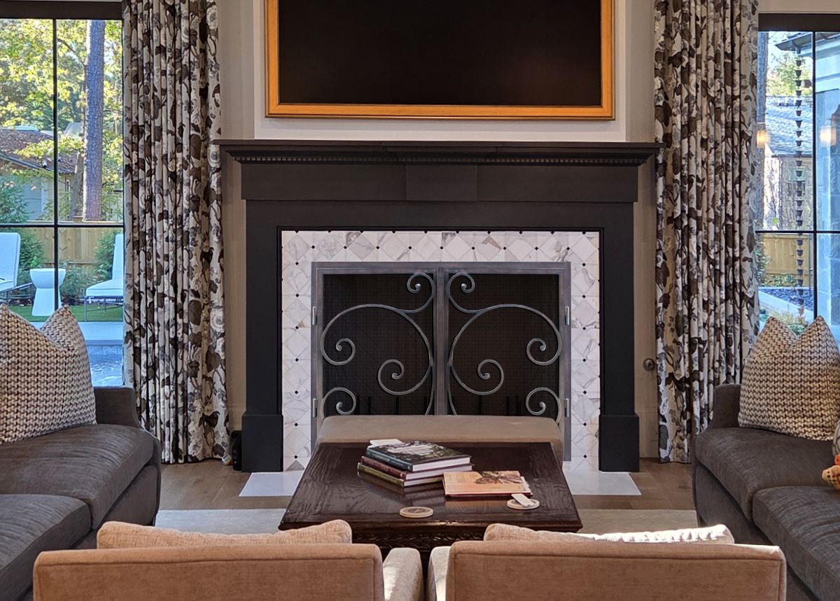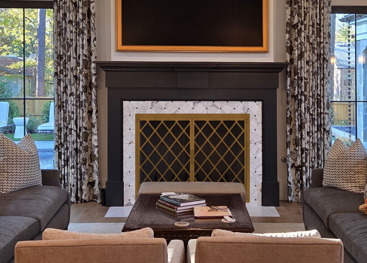 If you are planning on burning anything in your fireplace, you need to have mesh behind the glass so you can burn a fire with the doors open. You can chooe between gate mesh backup doors and sliding mesh curtains. Functionally, gate mesh performs the best as the wire has smaller holes that sparks cannot get through. Aesthetically, mesh curtains may be preferred because they do not have a vertical center frame that obstructs the view of the fire. When you are not using the fire or you want a complete unobstructed view, they do not stick out like gate mesh doors when they are opened.