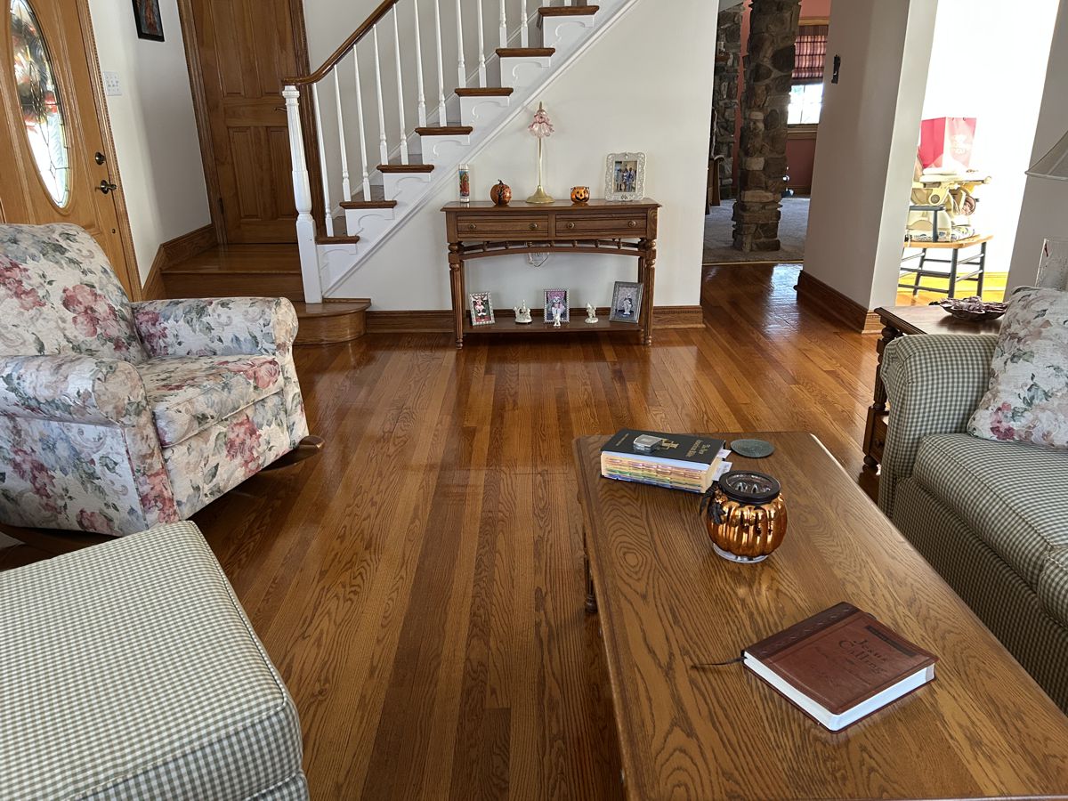 Photo #2: With your back to the fireplace, take a picture looking straight out into the room so we can see the decor directly in front of the fireplace.