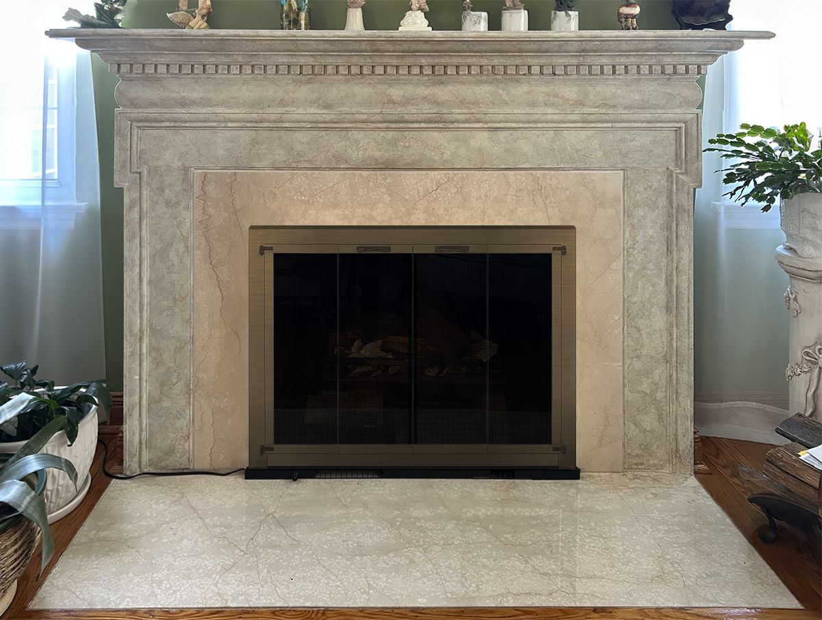 Scale & Finish Disclaimer: Mockups shown on this site are not necessarily to scale and are meant to help you choose the style of your screen or door. The appearance of finishes represented may vary between digital monitors and screens. I do my best to recommend finishes that I believe will blend with your decor and flatter your fireplace. You can view finish options here: