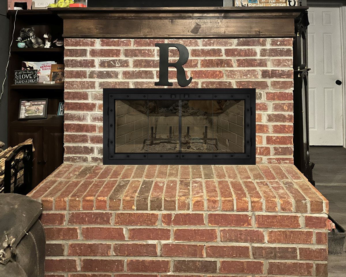 Our Comments: Below are doors that can be made to overlap the bricks covering your zero clearance fireplace. You should burn fires with the glass doors open to prevent the metal fireplace from overheating. I have included options made from various materials and price ranges including aluminum, steel and wrought iron. These are not available in oil rubbed bronze, so I am only showing black. Also, the fireplace is too small for a blower.