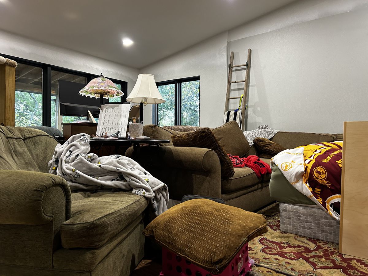 Photo #2: With your back to the fireplace, take a picture looking straight out into the room so we can see the decor directly in front of the fireplace.