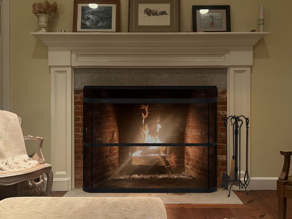 Customer Comments: Hello, I need a fireplace screen that would cover the 60 inch height, 48 inch width fireplace. I'm looking for a simple black framed screen that would protect any sparks from escaping.