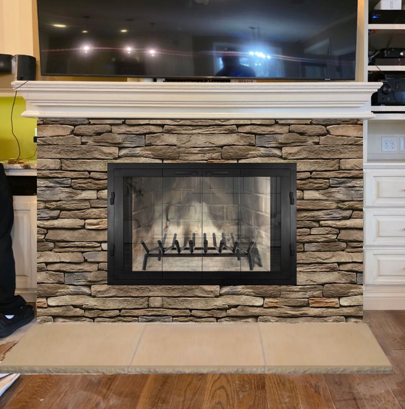 If you are planning on burning anything in your fireplace, you need to have mesh behind the glass so you can burn a fire with the doors open. You can chooe between gate mesh backup doors and sliding mesh curtains. Functionally, gate mesh performs the best as the wire has smaller holes that sparks cannot get through. Aesthetically, mesh curtains may be preferred because they do not have a vertical center frame that obstructs the view of the fire. When you are not using the fire or you want a complete unobstructed view, they do not stick out like gate mesh doors when they are opened.