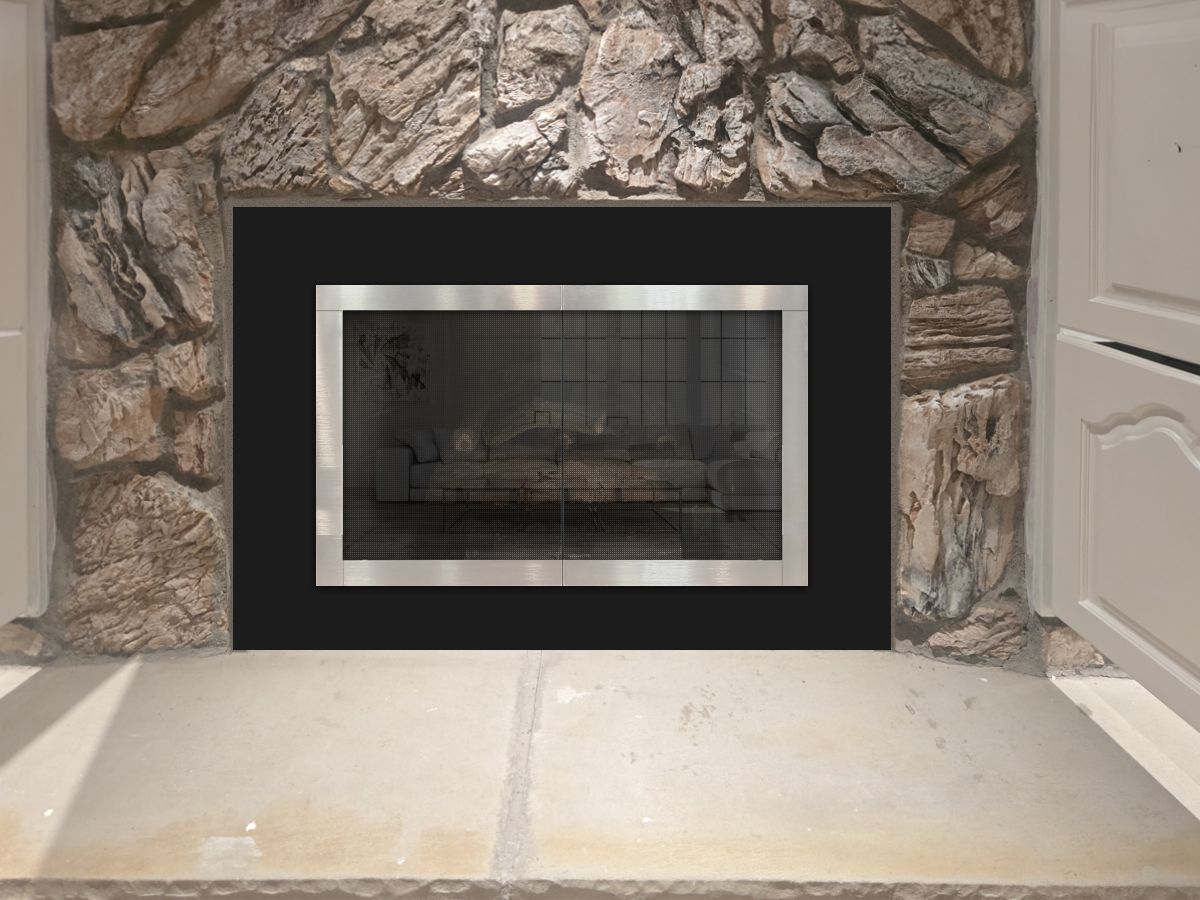 If you are planning on burning anything in your fireplace, you need to have mesh behind the glass so you can burn a fire with the doors open. You can chooe between gate mesh backup doors and sliding mesh curtains. Functionally, gate mesh performs the best as the wire has smaller holes that sparks cannot get through. Aesthetically, mesh curtains may be preferred because they do not have a vertical center frame that obstructs the view of the fire. When you are not using the fire or you want a complete unobstructed view, they do not stick out like gate mesh doors when they are opened.