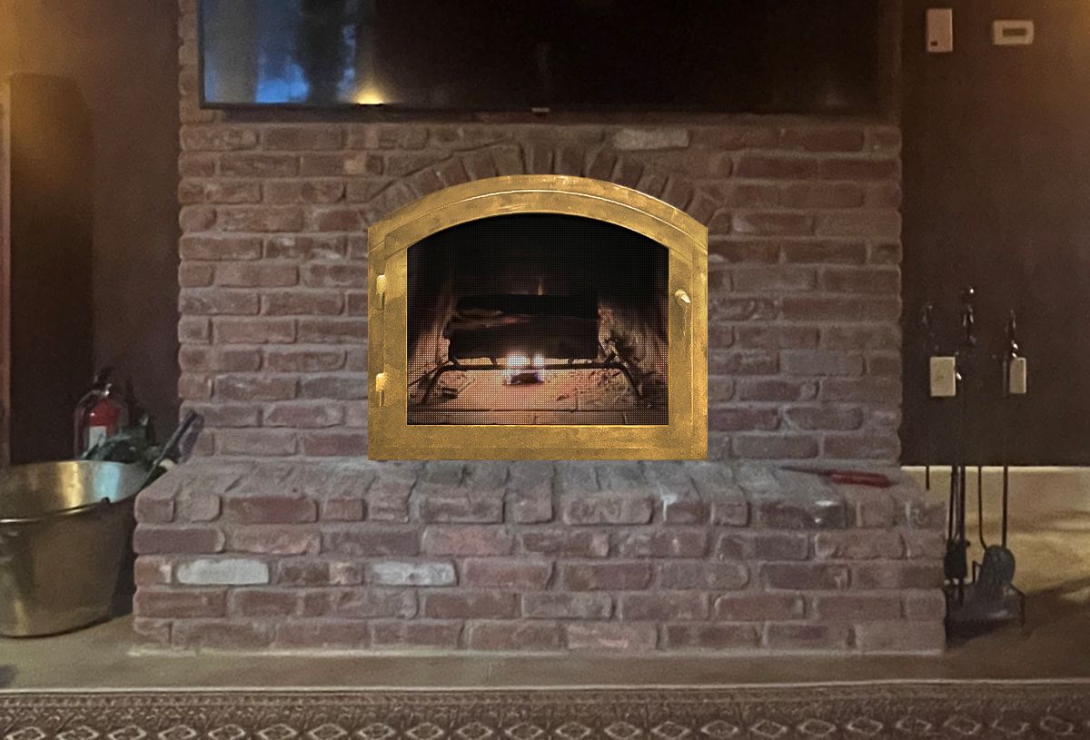 Option #2: Hand Crafted Contemporary Single Arched Fireplace Mesh Door in Burnished Matte Brass (Plated).