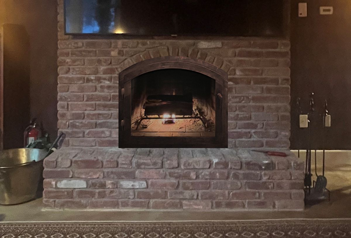 If you are planning on burning anything in your fireplace, you need to have mesh behind the glass so you can burn a fire with the doors open. You can chooe between gate mesh backup doors and sliding mesh curtains. Functionally, gate mesh performs the best as the wire has smaller holes that sparks cannot get through. Aesthetically, mesh curtains may be preferred because they do not have a vertical center frame that obstructs the view of the fire. When you are not using the fire or you want a complete unobstructed view, they do not stick out like gate mesh doors when they are opened.