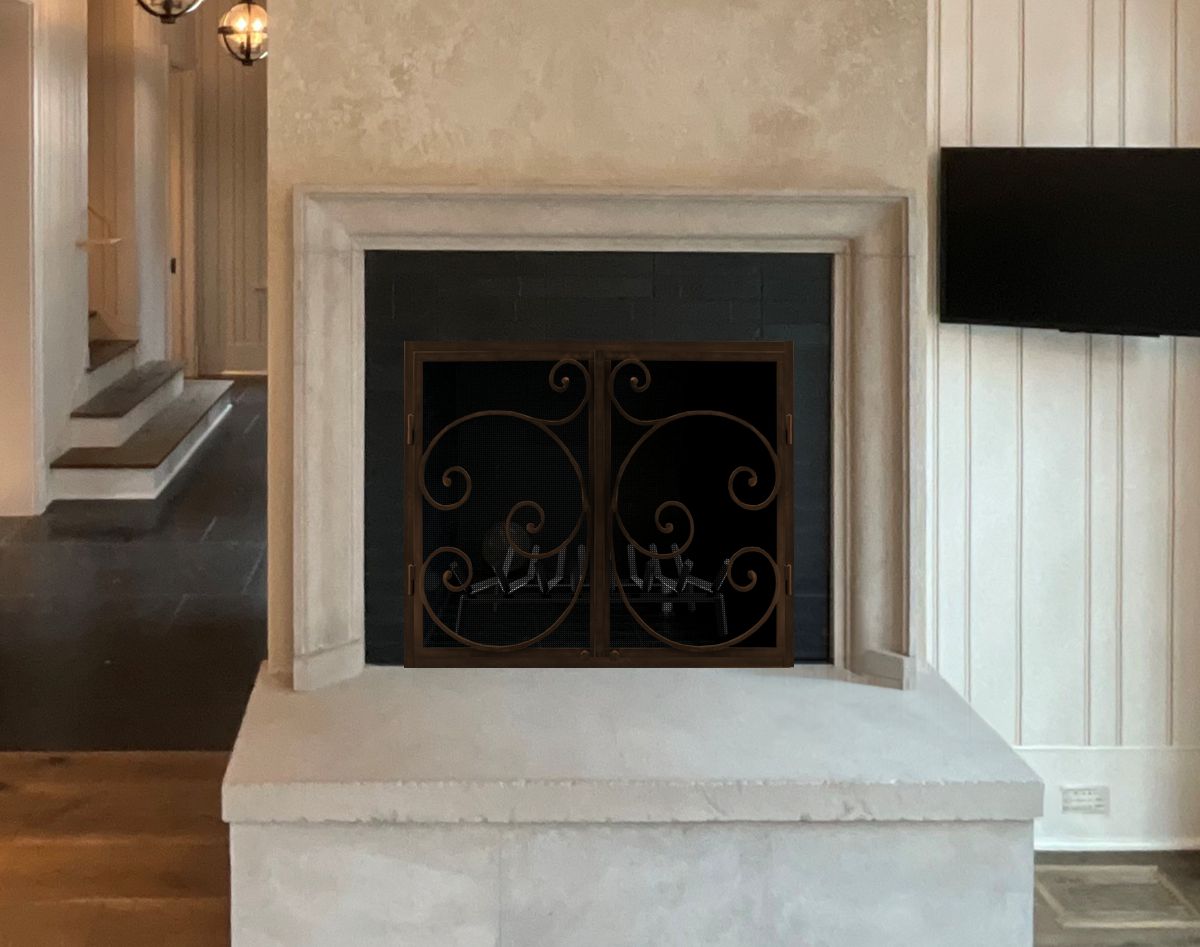 Scale & Finish Disclaimer: Mockups shown on this site are not necessarily to scale and are meant to help you choose the style of your screen or door. The appearance of finishes represented may vary between digital monitors and screens. I do my best to recommend finishes that I believe will blend with your decor and flatter your fireplace. You can view finish options here: