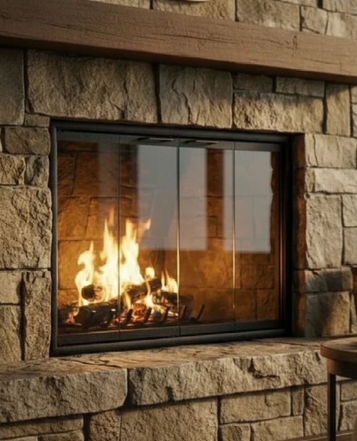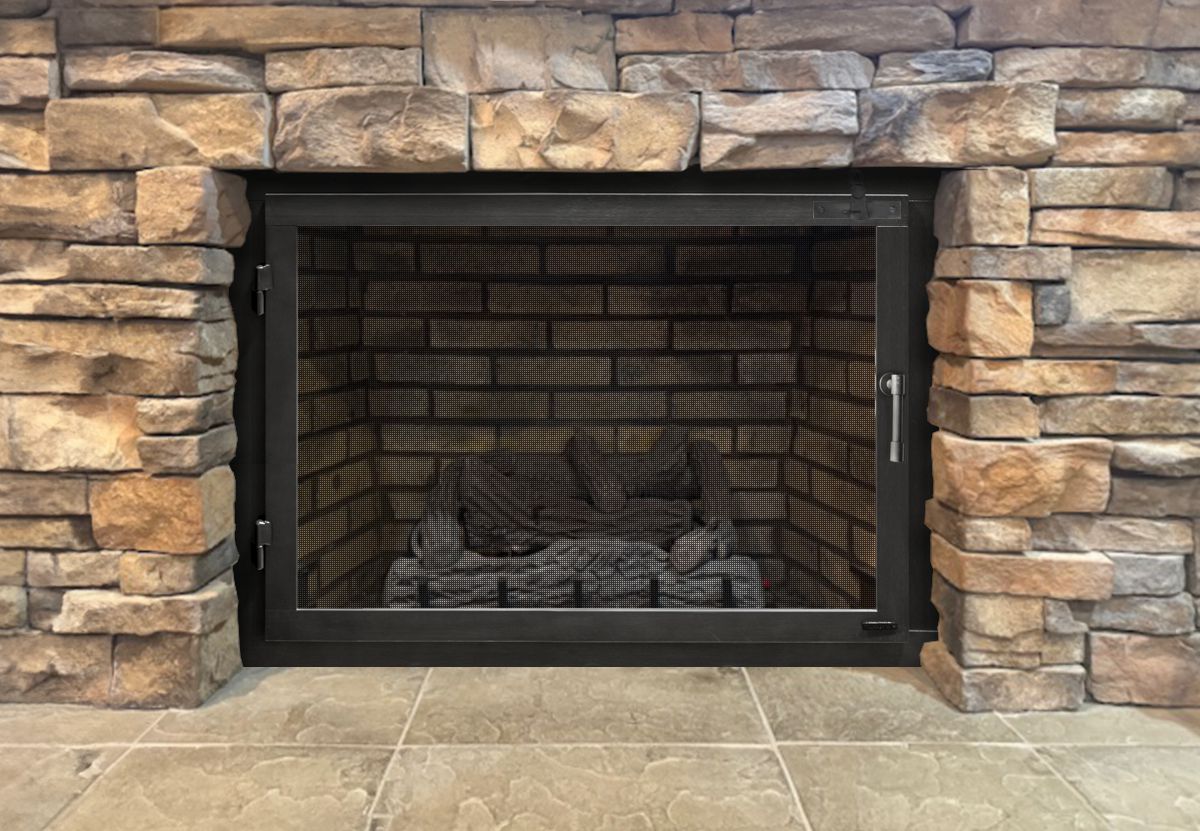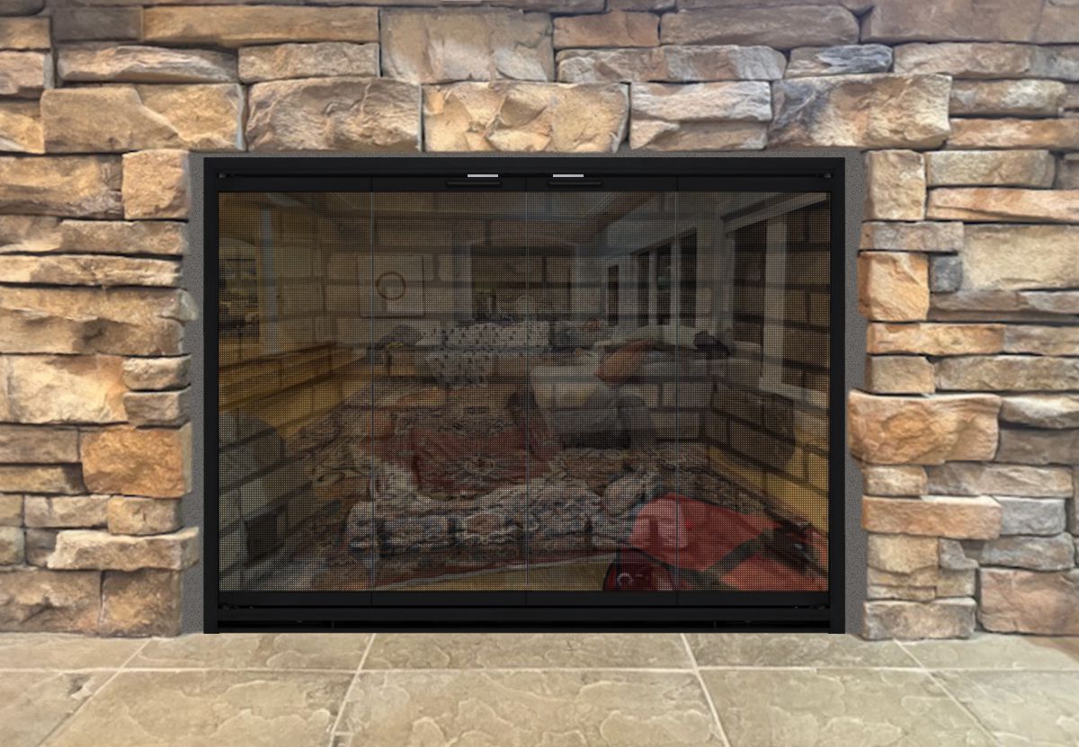 If you are planning on burning anything in your fireplace, you need to have mesh behind the glass so you can burn a fire with the doors open. You can chooe between gate mesh backup doors and sliding mesh curtains. Functionally, gate mesh performs the best as the wire has smaller holes that sparks cannot get through. Aesthetically, mesh curtains may be preferred because they do not have a vertical center frame that obstructs the view of the fire. When you are not using the fire or you want a complete unobstructed view, they do not stick out like gate mesh doors when they are opened.
