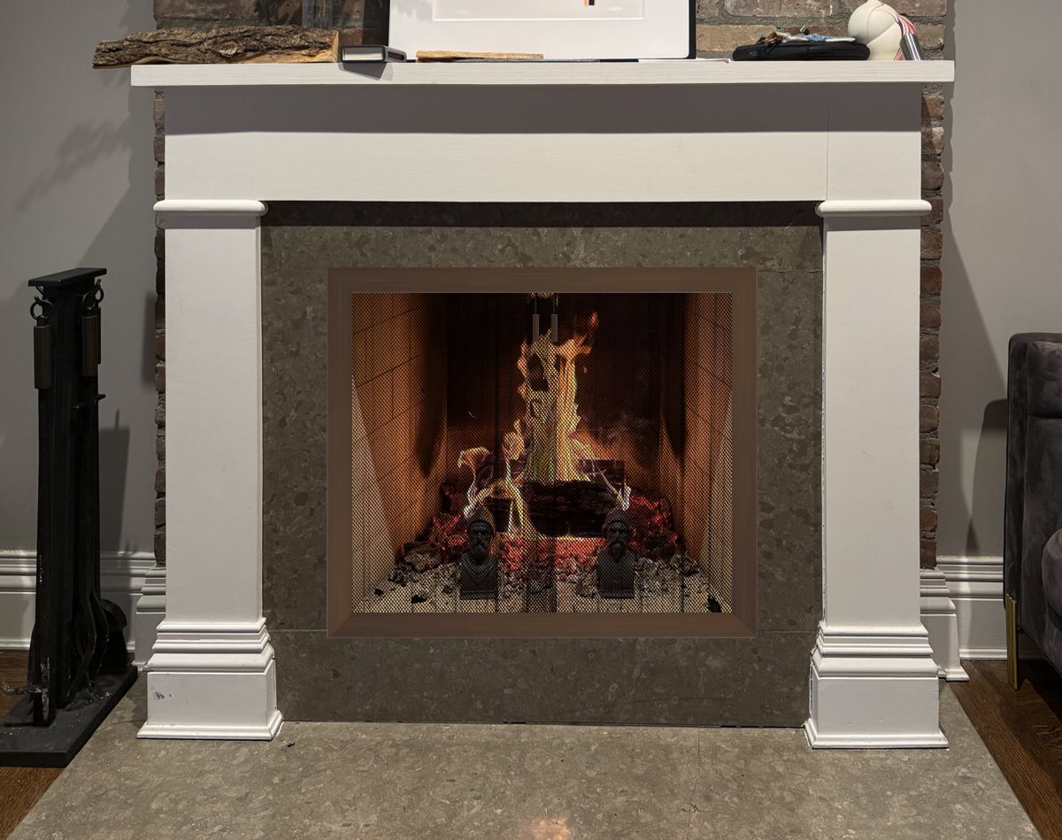 Scale & Finish Disclaimer: Mockups shown on this site are not necessarily to scale and are meant to help you choose the style of your screen or door. The appearance of finishes represented may vary between digital monitors and screens. I do my best to recommend finishes that I believe will blend with your decor and flatter your fireplace. You can view finish options here: