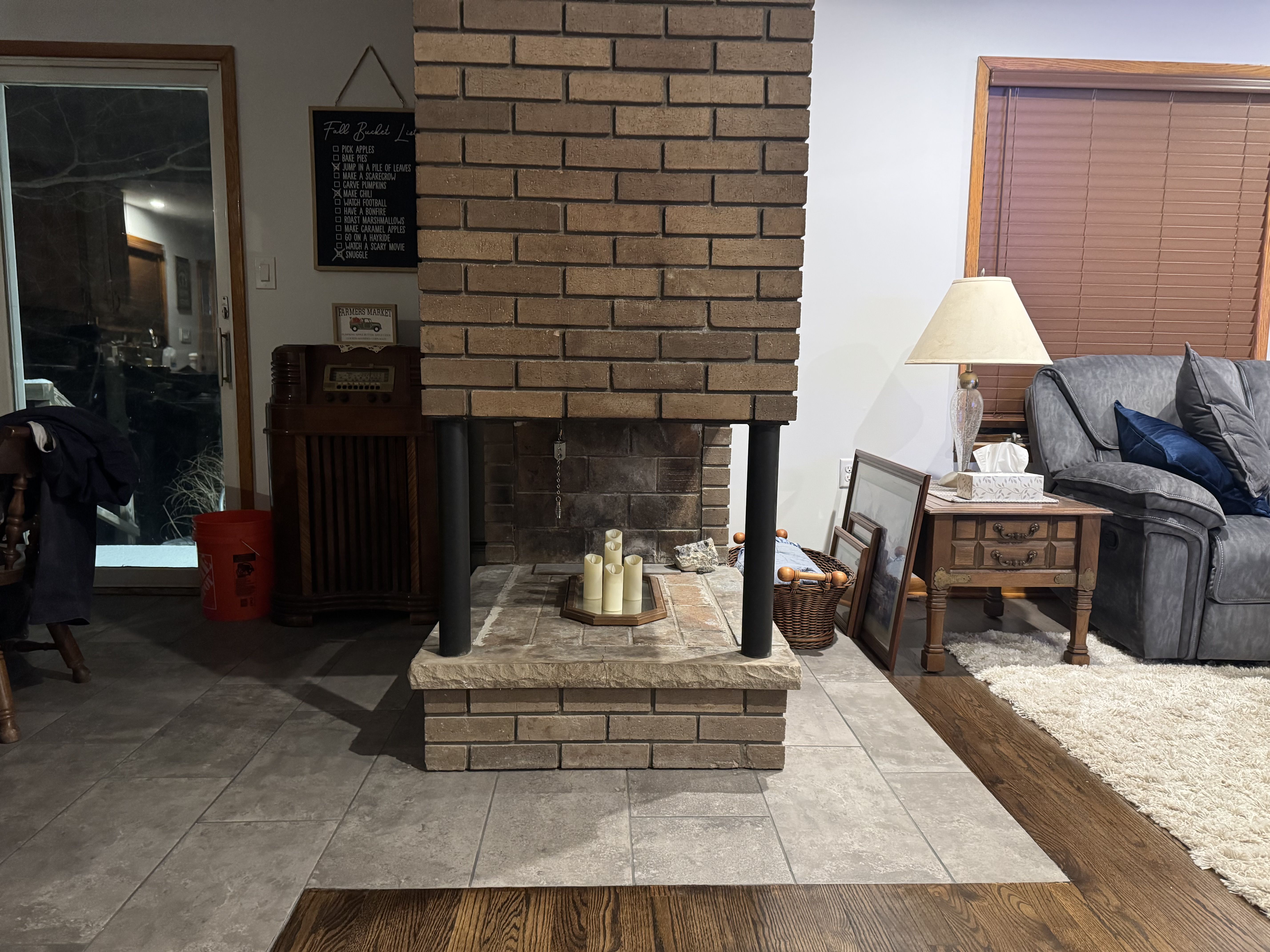Photo #2: With your back to the fireplace, take a picture looking straight out into the room so we can see the decor directly in front of the fireplace.