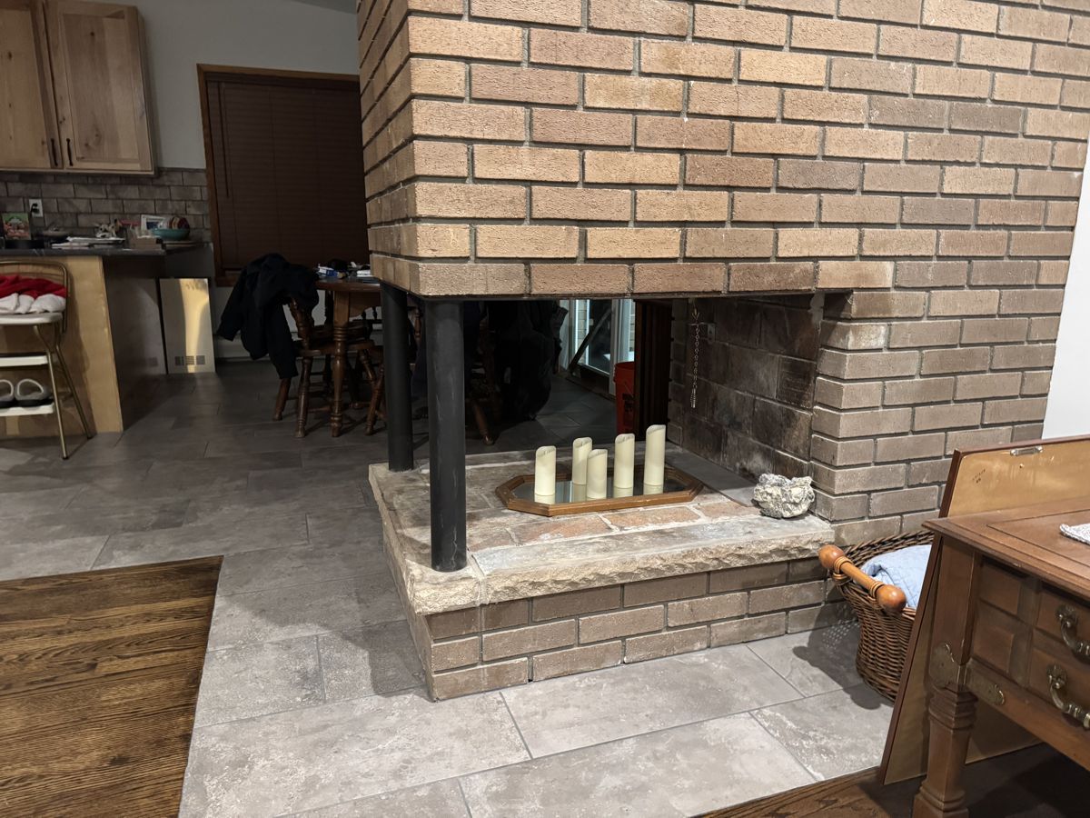 Fireplace Opening: 38 1/4" W (Long Sides) x 33 1/2" W (Short Side) x 22" H (Lintel) x 3/4" to Posts