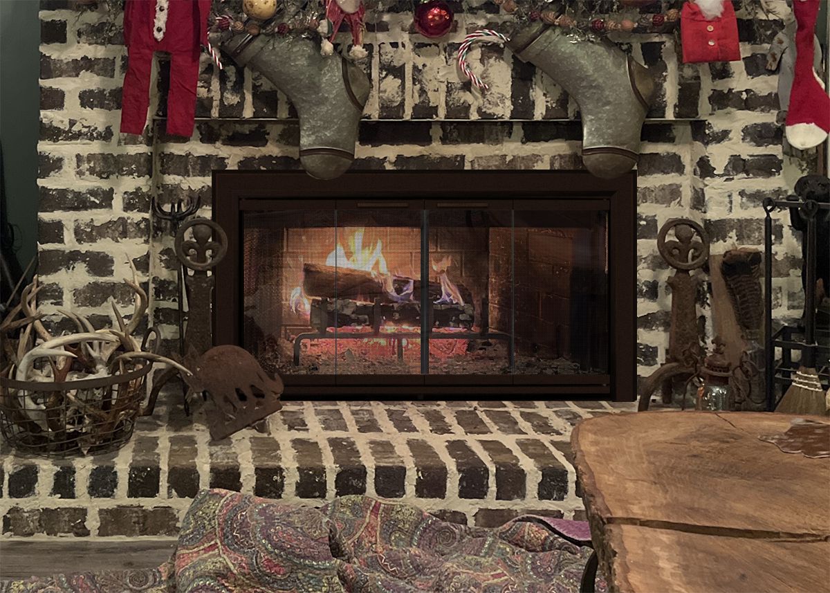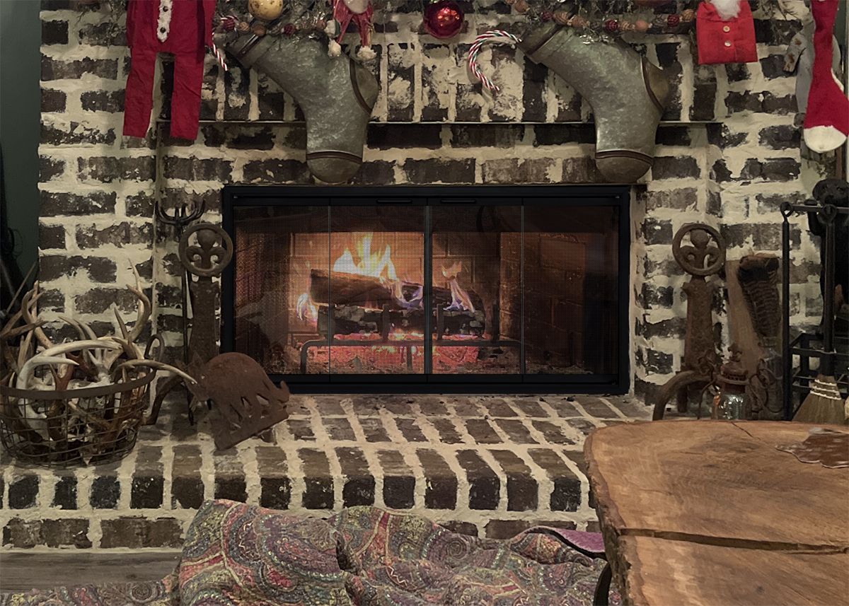 If you are planning on burning anything in your fireplace, you need to have mesh behind the glass so you can burn a fire with the doors open. You can chooe between gate mesh backup doors and sliding mesh curtains. Functionally, gate mesh performs the best as the wire has smaller holes that sparks cannot get through. Aesthetically, mesh curtains may be preferred because they do not have a vertical center frame that obstructs the view of the fire. When you are not using the fire or you want a complete unobstructed view, they do not stick out like gate mesh doors when they are opened.