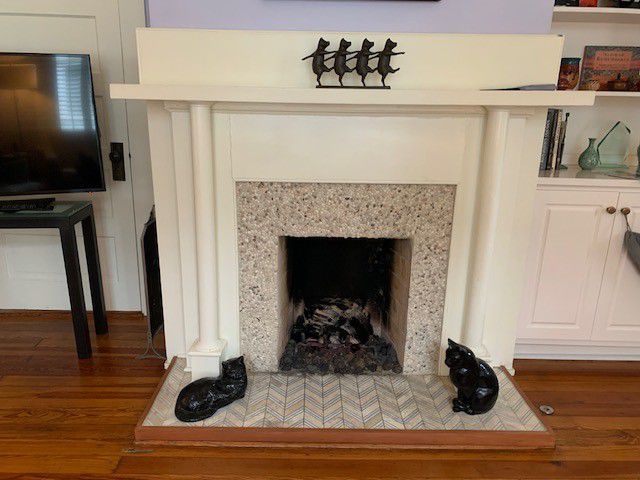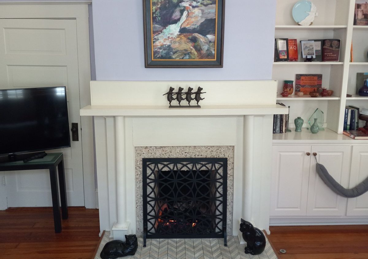 Our Comments: After reviewing your pictures, I have chosen to create the mockups using Fireplace #1 since those pictures are better quality. For both fireplaces, I suggest making the screen 2" wider than the opening on the top and eash side to create a better proportion. I included 6 patterns to choose from that I believe work best with your decor.