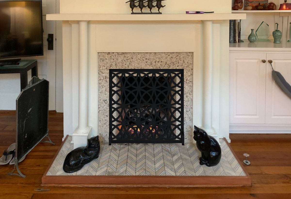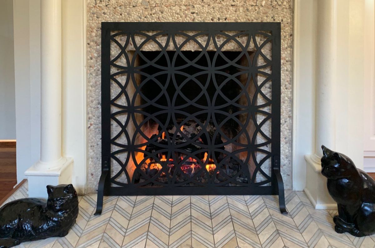 Dining Room: Option #6: Hearth Creations DXF-Z111 Laser Cut Fireplace Screen in Black. No Mesh.