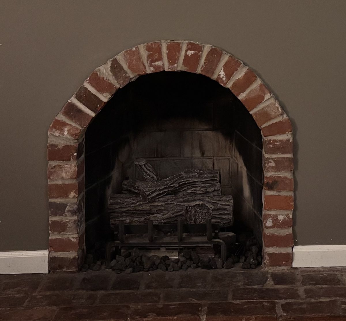 Customer Comments: Fireplace 1 of 3 in den / office with gas insert. Small cozy room. Has ventless gas logs.