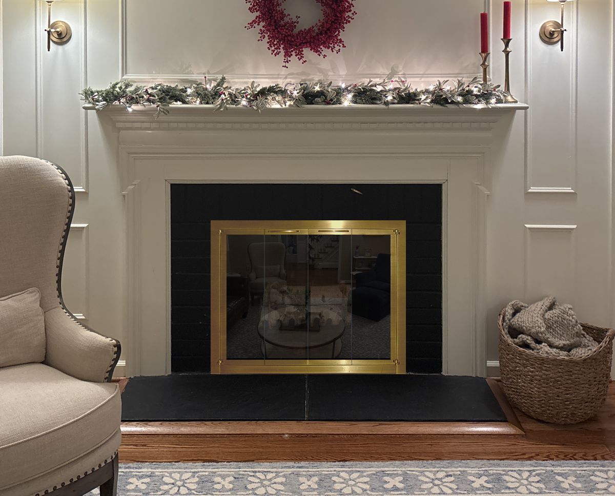 Scale & Finish Disclaimer: Mockups shown on this site are not necessarily to scale and are meant to help you choose the style of your screen or door. The appearance of finishes represented may vary between digital monitors and screens. I do my best to recommend finishes that I believe will blend with your decor and flatter your fireplace. You can view finish options here: