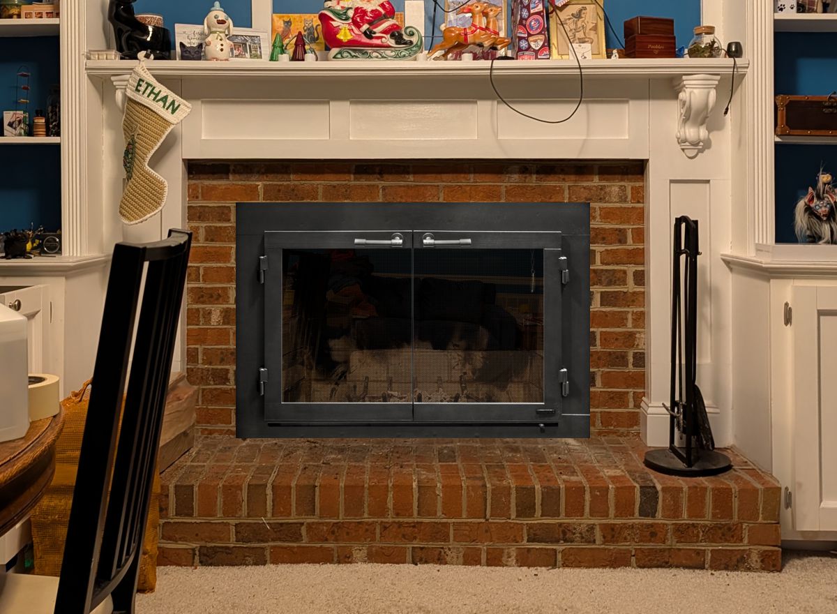 Customer Comments: Recently moved in. Looking for a fireplace cover. Hoping to get something that helps with the draft but also allows the fire to burn (our home has negative pressure by the way. We deal with this by cracking our door). Not sure we can afford a nice cover yet as we just purchased, but I saw your reddit posts and wanted to get an idea on upgrading our setup! The view FROM the fireplace is bare and messy right now hahaha.