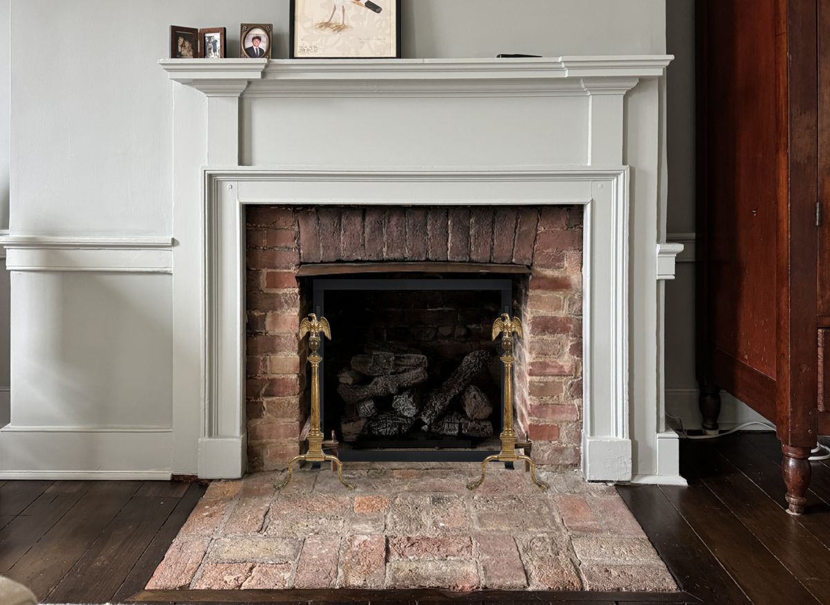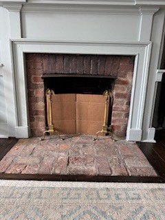 Customer Comments: This is a very small fireplace built in early 1800s. Width is 29”, height is 19” but copper hood drops down about an inch. Andirons reduce the width to 27” and sit 3.6” above the floor. A freestanding screen, thank you. Something simple in design, that won’t detract from the andirons. Purpose is to keep the cat out of the fireplace!!