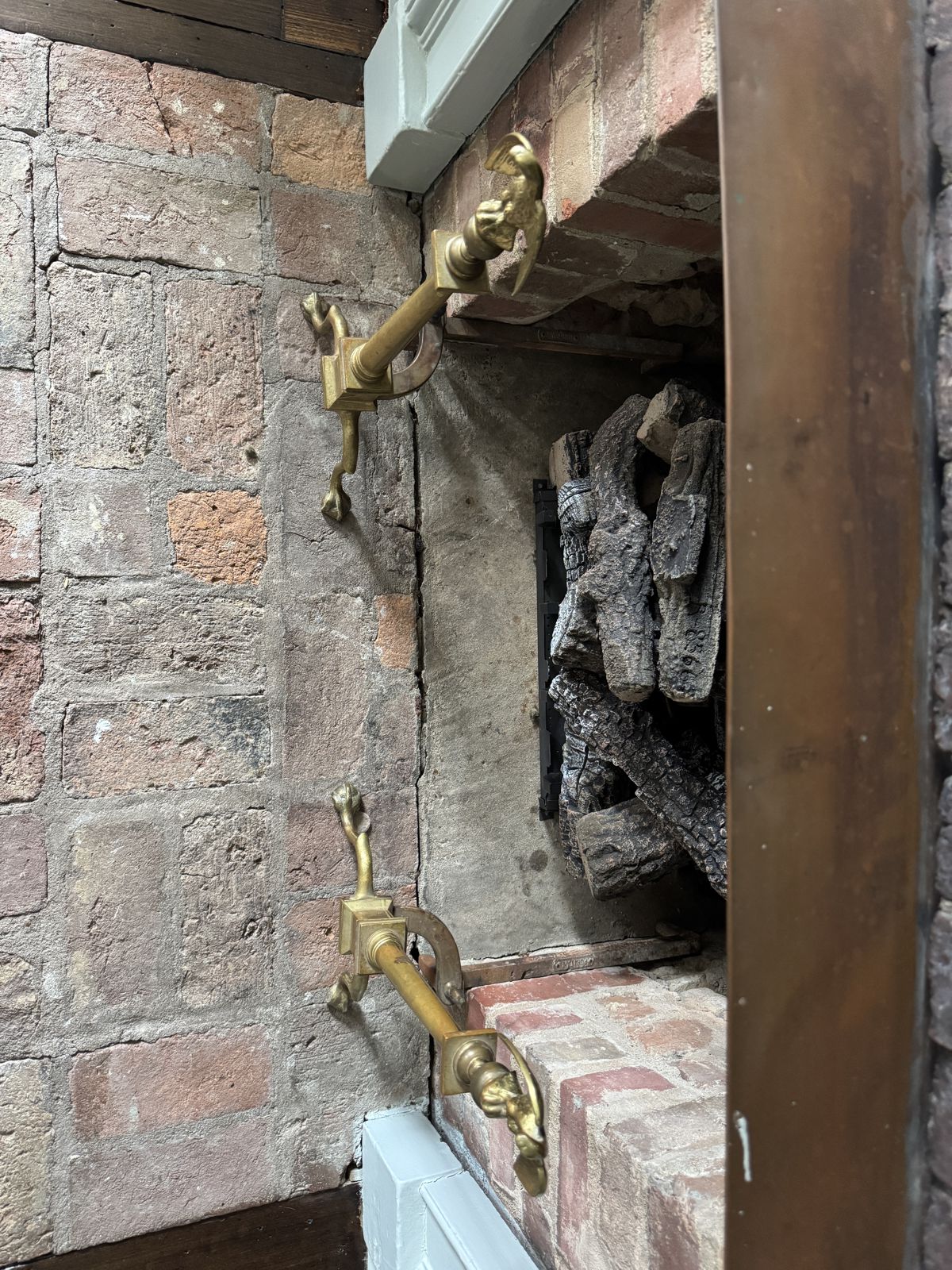 Our Comments: I would suggest moving the andirons in where the shanks are against the logs, which is a more proper position. We can then make a screen that has cutouts for the shanks, which is more of a period design. I am showing options made both ways so you can decide which way you like best.