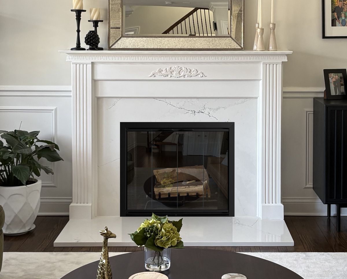 Scale & Finish Disclaimer: Mockups shown on this site are not necessarily to scale and are meant to help you choose the style of your screen or door. The appearance of finishes represented may vary between digital monitors and screens. I do my best to recommend finishes that I believe will blend with your decor and flatter your fireplace. You can view finish options here: