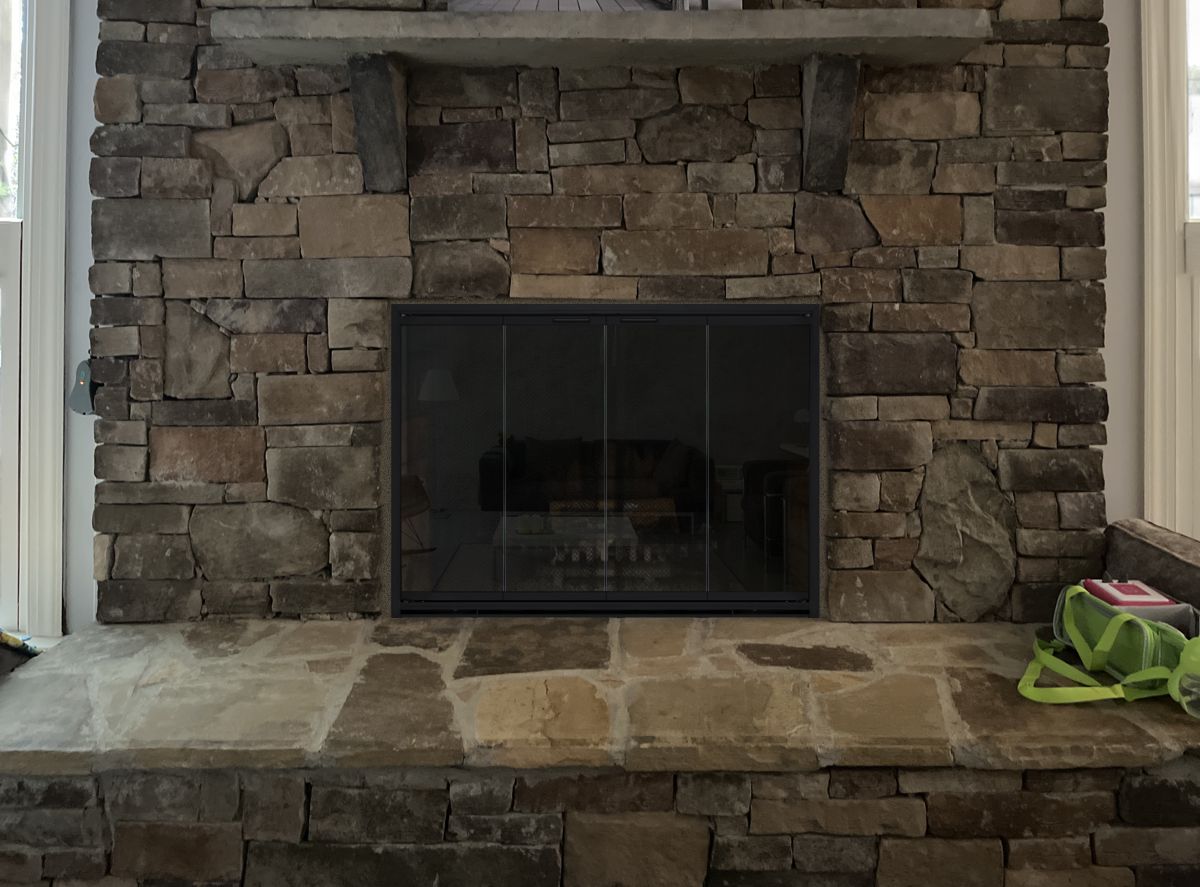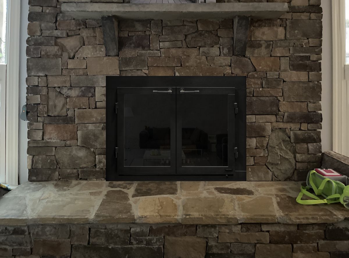 Customer Comments: We love our wood burnt fireplace, however after burning it sometimes smells like a campfire in the house, and I’m hoping some glass doors would not only be safer but also prevent some of the smell in the house from occurring. Realize one challenge we have with putting doors in is the sides are not exactly flush or even because of the brick structure I can fill that in if needed. Anyways, would love to hear what we might be able to do. Doesn’t need to be complex maybe something simple look forward to the mock up.