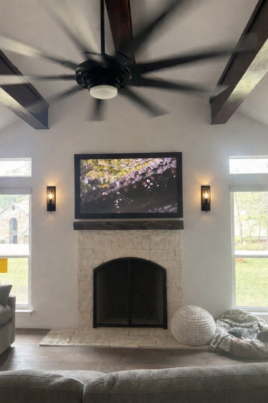 Photo #2: With your back to the fireplace, take a picture looking straight out into the room so we can see the decor directly in front of the fireplace.