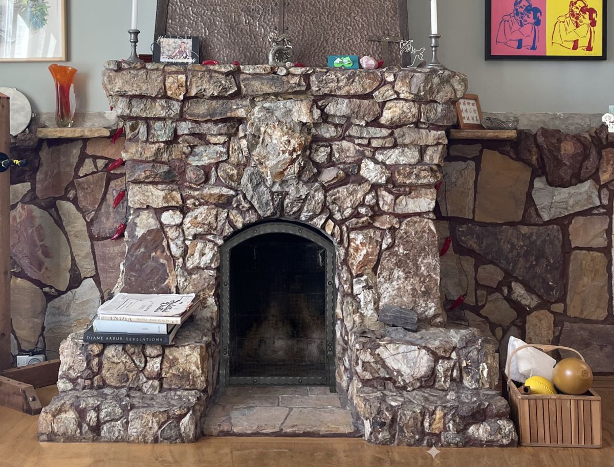 Our Comments: Due to the irregularity of the stones and the two seats next to the opening, the screen must be made to fit inside the fireplace opening.