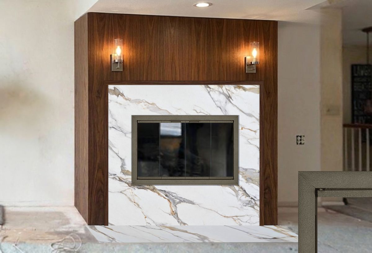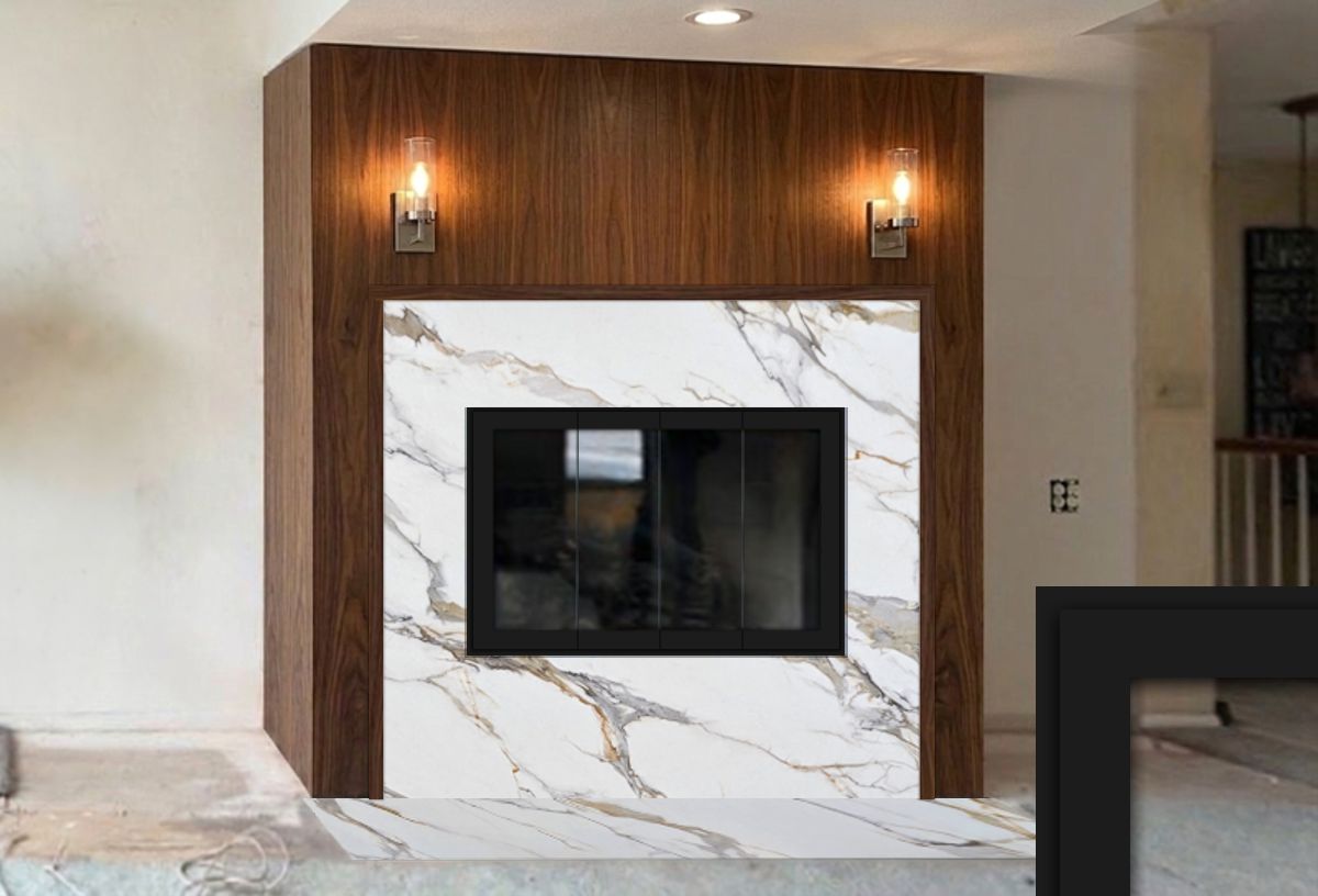 Customer Comments: Would like to lower this fireplace and move 2 feet to the left and replace the doors. We will use quartz around the face of the fireplace, and six inches above the top. The fireplace is a gas log unit. No natural wood is burned in this unit. The fireplace design we are looking at is something along the lines of the photo (see inspiration photo below). The measurements are. 47 by 26 1/4. Walnut wood will be used for the finish.
