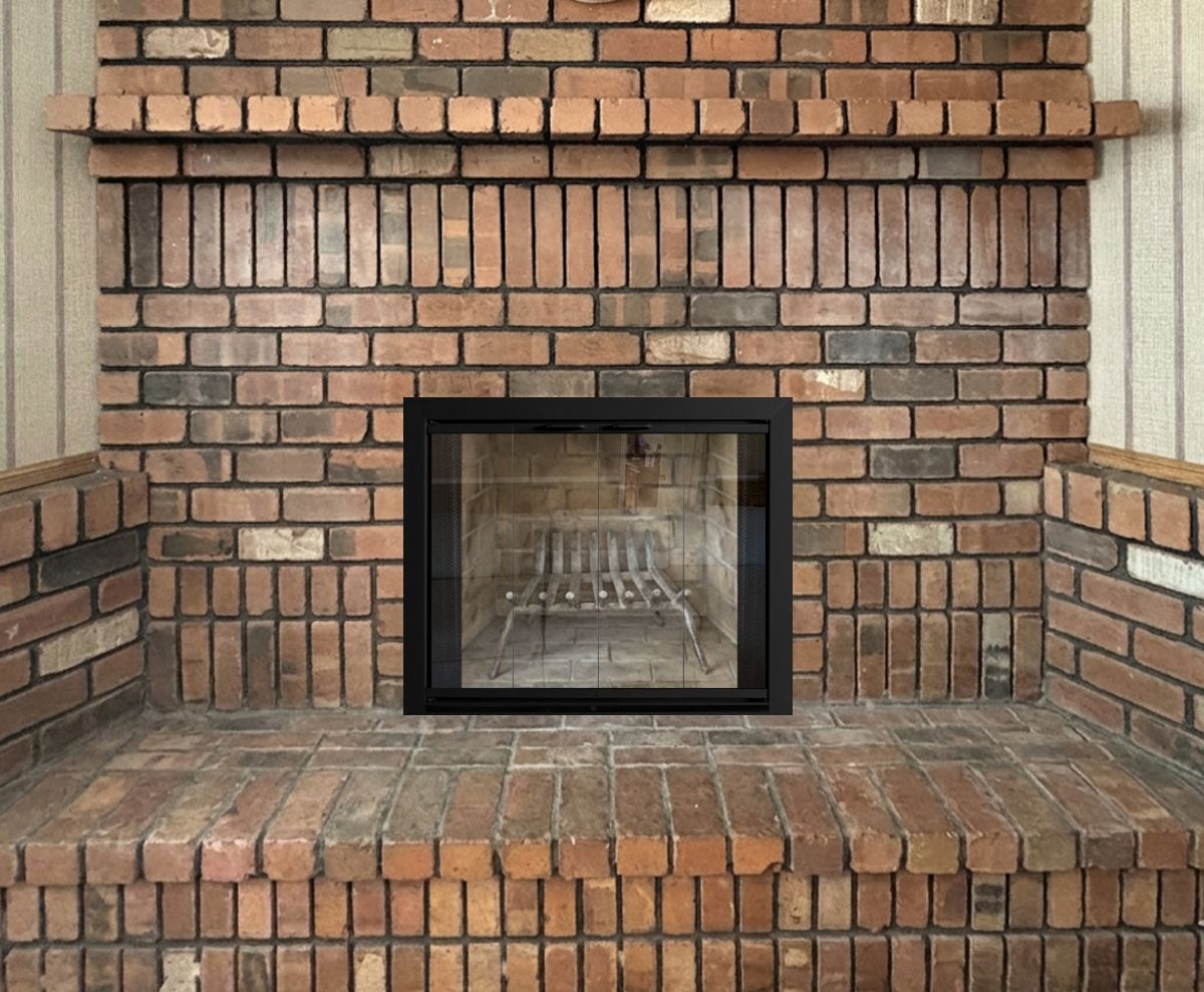 Our Comments: I have created several mockups of doors in black as well as a couple other finishes to consider, although they all can be made black. The main consideration will be whether you want to have the ability to close the glass doors when the fire is burning, in which case you need ceramic glass. I recommend gate mesh backup doors behind the glass, although mesh curtains are an option.