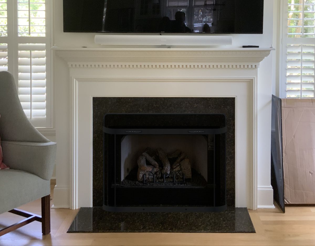 Customer Comments: I need a single flat panel to cover this gas log fireplace. Floor to top of opening ( there is a 3” cap that juts out from the top) is 24.75”. The width is 37.75”