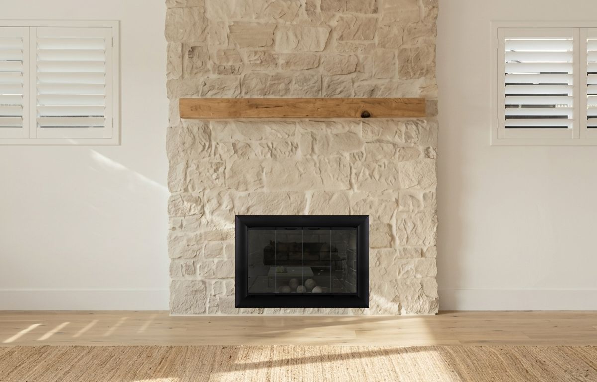 Our Comments: Here are some examples of fireplace doors and electric inserts as we discussed over the phone. Fitting a glass door inside the opening requires the gaps between the frame and the stones to be filled with mortar, which is the most difficult installation. The others are easy to install. The electric fireplaces require a surround trim to cover the space between the insert and the stones. The surrounds have an almost unlimited amount of styles and finishes. You can view additional options here: Fireplace Surround Trims.