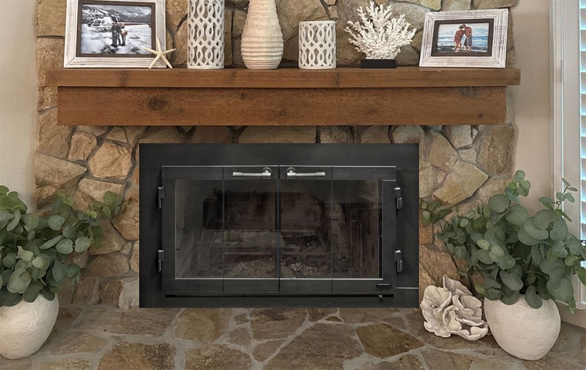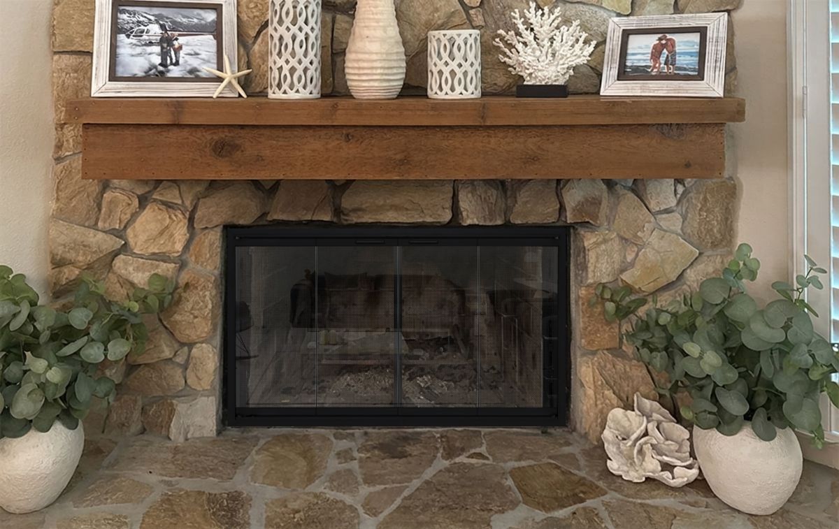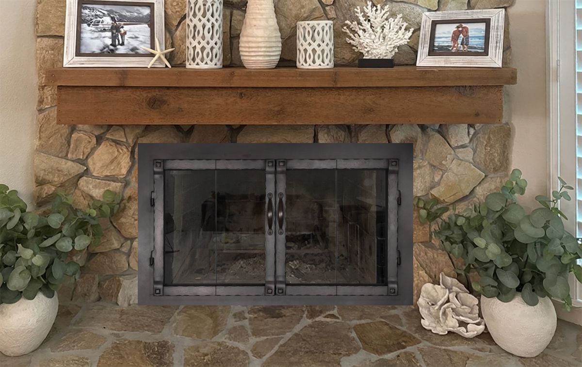 If you are planning on burning anything in your fireplace, you need to have mesh behind the glass so you can burn a fire with the doors open. You can chooe between gate mesh backup doors and sliding mesh curtains. Functionally, gate mesh performs the best as the wire has smaller holes that sparks cannot get through. Aesthetically, mesh curtains may be preferred because they do not have a vertical center frame that obstructs the view of the fire. When you are not using the fire or you want a complete unobstructed view, they do not stick out like gate mesh doors when they are opened.
