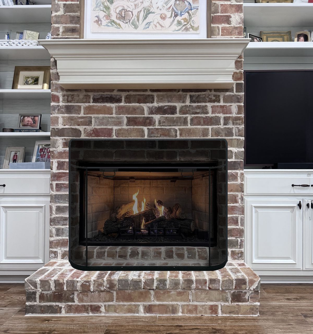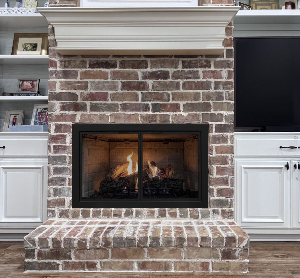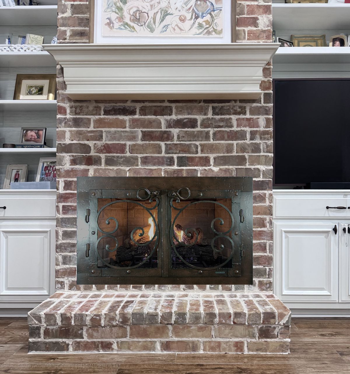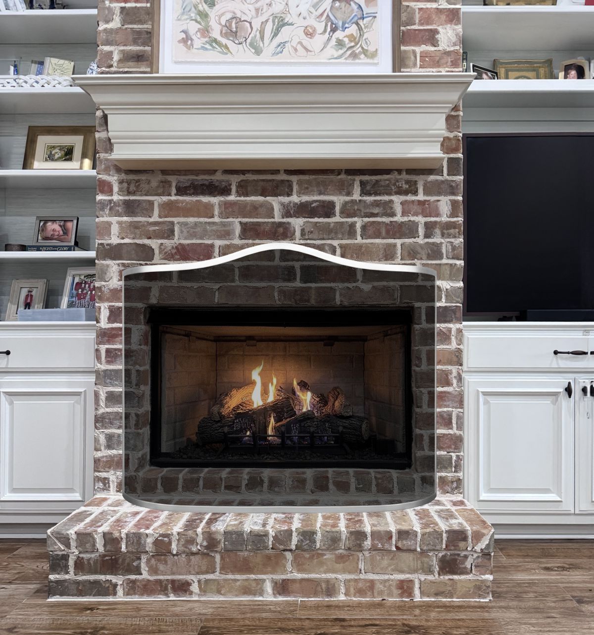 If you are planning on burning anything in your fireplace, you need to have mesh behind the glass so you can burn a fire with the doors open. You can chooe between gate mesh backup doors and sliding mesh curtains. Functionally, gate mesh performs the best as the wire has smaller holes that sparks cannot get through. Aesthetically, mesh curtains may be preferred because they do not have a vertical center frame that obstructs the view of the fire. When you are not using the fire or you want a complete unobstructed view, they do not stick out like gate mesh doors when they are opened.