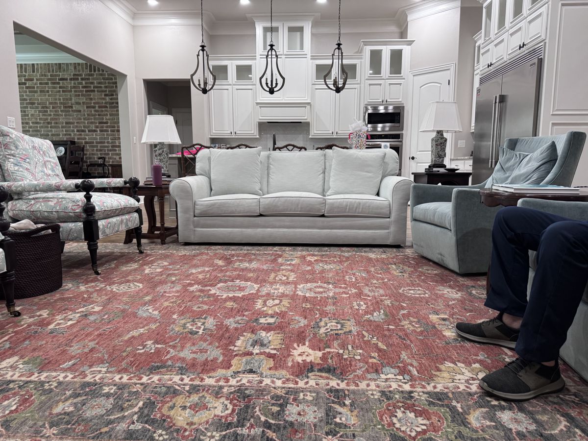 Photo #2: With your back to the fireplace, take a picture looking straight out into the room so we can see the decor directly in front of the fireplace.