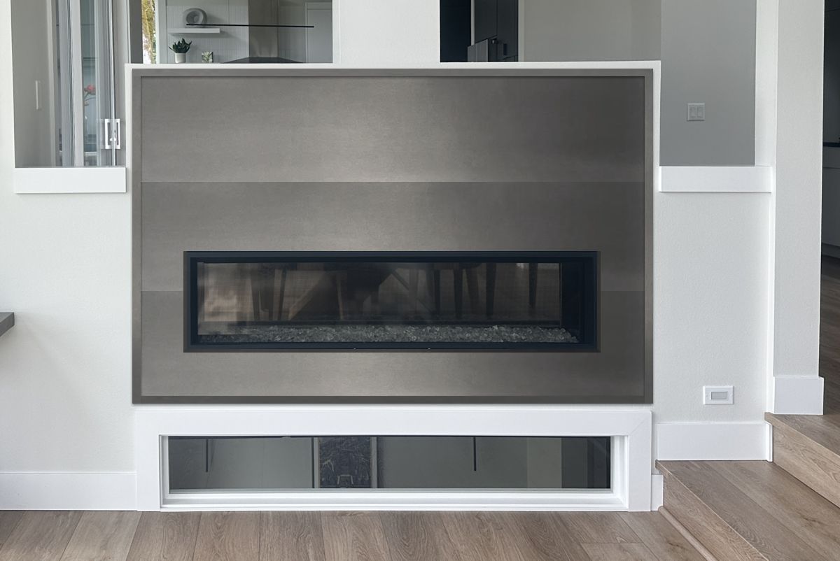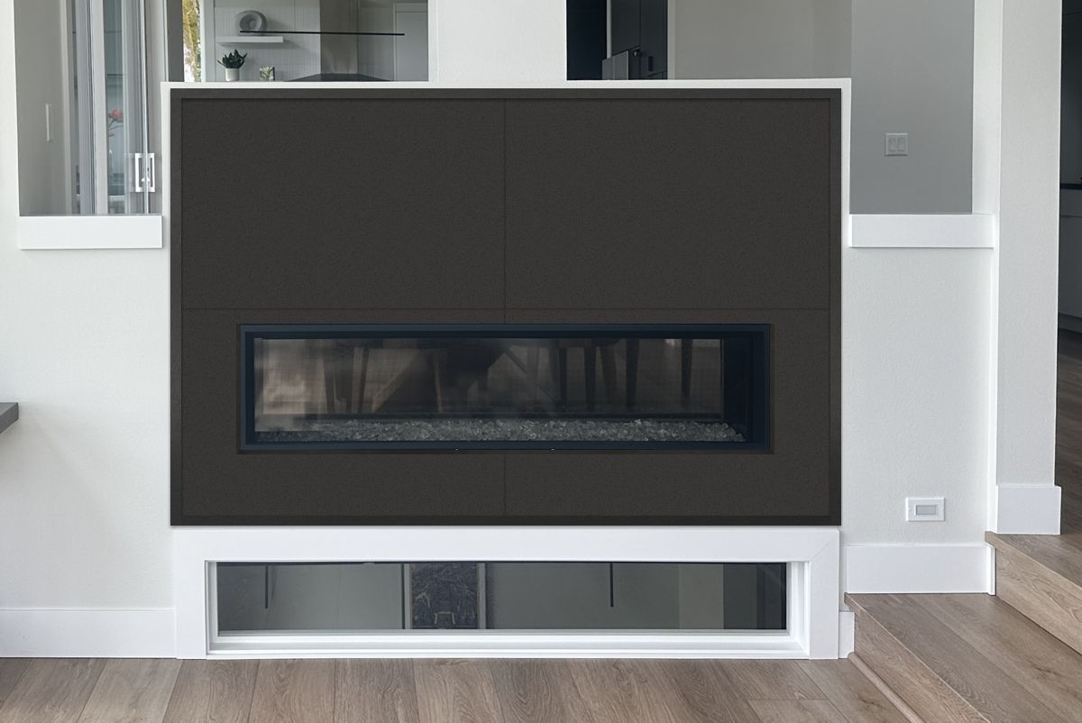 Option #1B: Hearth Creations Metal Wall Panels in Premium Antique Black Steel. Shown with small space at bottom to match space at top.