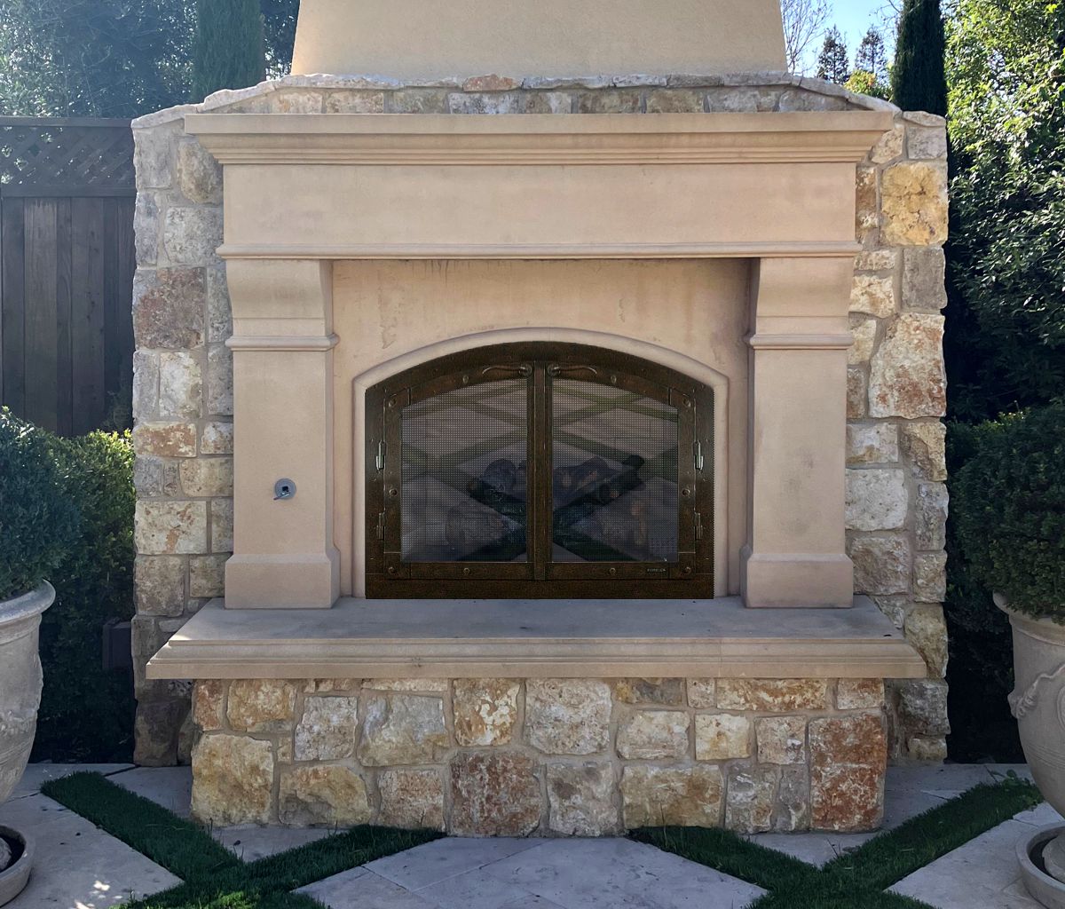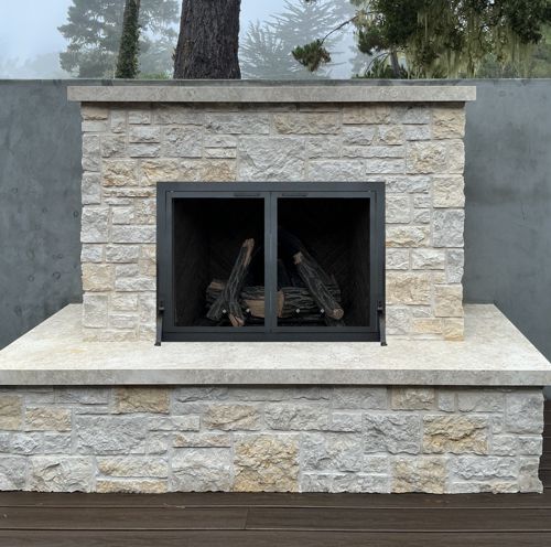 Glass doors are a fantastic treatment for outdoor fireplaces. If you have doors with ceramic glass, you can close them when it gets windy to prevent smoke and ashes blowing around. Plus, they help keep critters out of the fireplace.