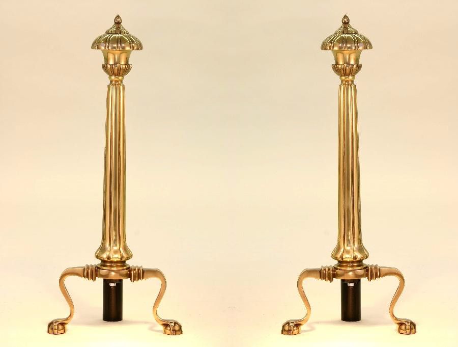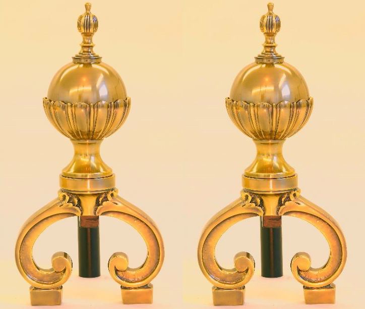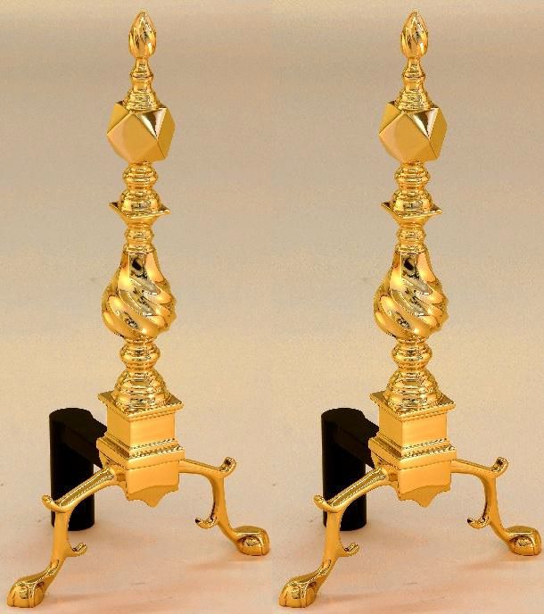 These solid brass antique reproduction andirons were hand crated in the USA by artisans with painstaking attention to detail. These are all heirloom quality and meant to outlast generations. The pictures are not necessarily the finish that is available. Be sure to look at the finish swatches for the finishes that are avilable. They are being sold at or below half their original retail price while supplies last
