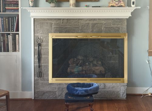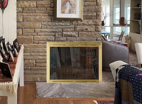 Example #11: CD-2 Solid Brass Fireplace Door in Satin Brass.